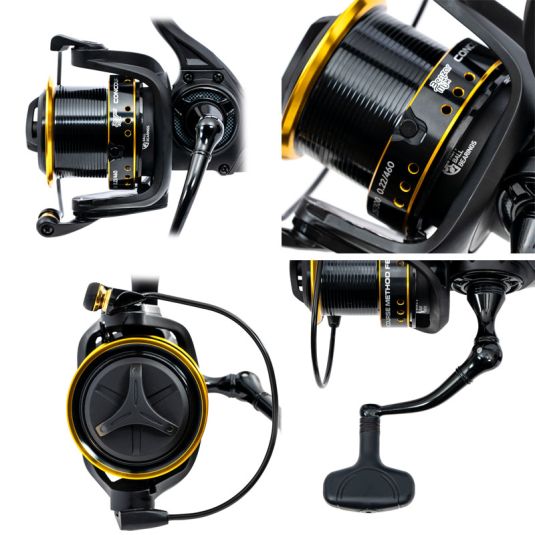 Creata in conformitate cu tendintele actuale de modernizare, sub indrumarea atenta a lui Benzar Zsolt, Concourse Method Feeder va asigura rezultate satisfacatoare pentru pescarii de stationar. Este o mulineta fara precedent, ce poate fi utilizata cu succes in atingerea distantelor dorite, datorita tamburilor supradimensionati. Clips-urile metalice, aflate de-o parte si de alta a tamburului fac ca pescuitul pe distante fixe sa fie usor realizabil.